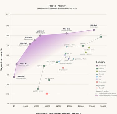 They launched an AI diagnostic agent named MAI-DxO that, in blind tests, diagnosed clinical cases with four times the accuracy of a human doctor. Yes — 4x better. Not faster. Not cheaper. Smarter.