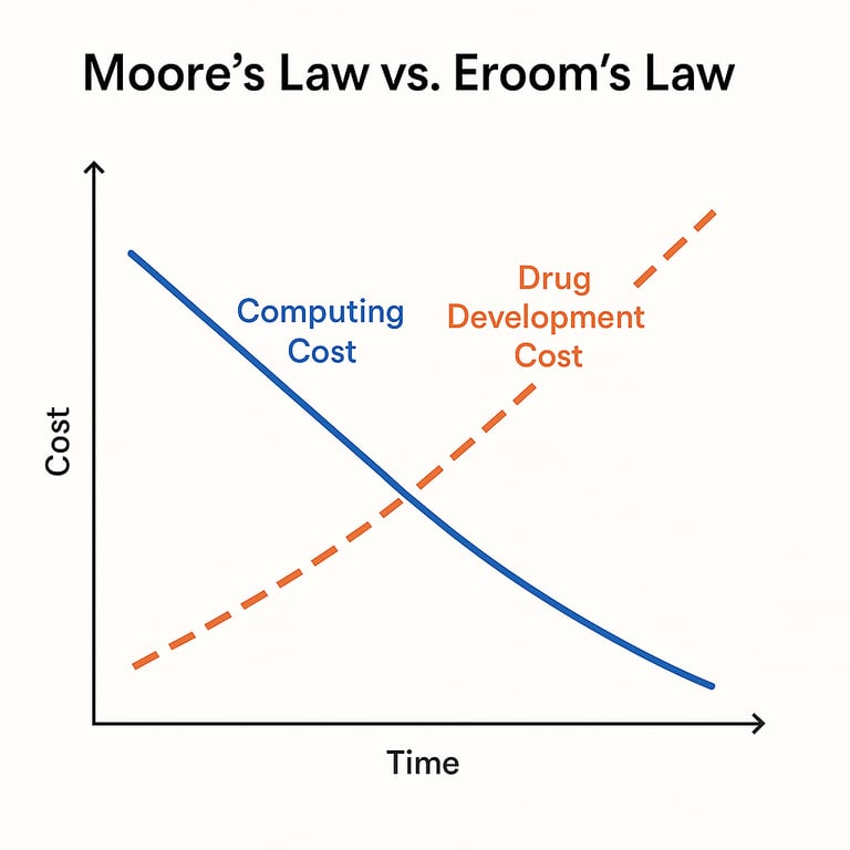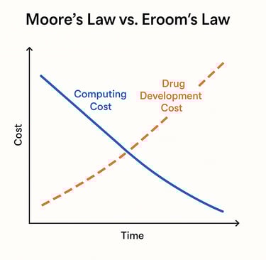 One curve is racing downward, making technology faster and cheaper. The other is climbing relentlessly, dragging healthcare costs higher each year. This blog unpacks the strange tale of Moore’s Law vs. Eroom’s Law — and how AI might be the unlikely hero that bridges the gap.